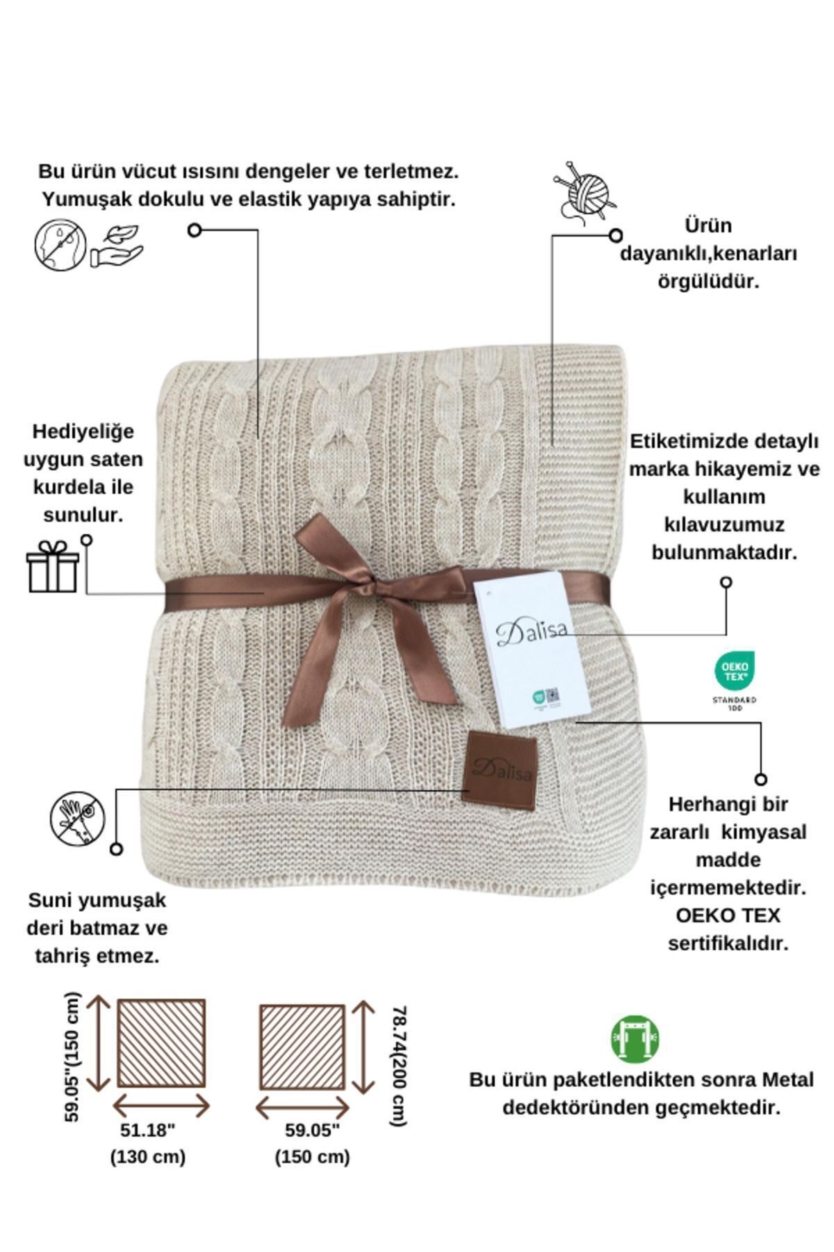 Triko Örgü Tv Battaniyesi, Koltuk Örtüsü & Çocuk Battaniyesi Cuo geleneksel el örgülerinin sıcaklığı ve modern tasarımın zarafetini bir araya getirerek evinizi güzelleştiriyor.; Bu ürün, modern ve zarif tasarımlı örgü deseniyle dikkat çekerken, farklı kullanım alanlarına uygun olarak tasarlanmıştır.; Cuo, rahat oturma alanları yaratmak için koltuklarınıza veya kanepelerinize örtü olarak kullanılabilir.; Özel olarak üretilen akrilik dokusu, kanepe, koltuk ve divanlarınızda kayma yapmayarak pratik bir kullanım sunar.; Aynı zamanda çocuğunuzun da mutlu ve güvenli bir şekilde kullanabileceği çok yönlü bir üründür.; Hem fonksiyonel hem de estetik olan bu battaniye, yüksek kaliteli malzemeler kullanılarak üretilmiştir ve uzun ömürlüdür.; Farklı renk seçenekleriyle ev dekorunuza çeşitlilik katarken, kalın dokusu ve yumuşacık örgü yapısıyla öne çıkar.; Ürünümüz OEKO-TEX STANDARD 100 Sertifikasına sahiptir.; Bu sertifika, ürünlerimizin yüksek kalite ve güvenlik standartlarına uygun olduğunu ve ürünlerimizin çeşitli zararlı maddeler açısından test edildiğini gösterir.; Güvenli ve sağlıklı bir deneyim sunmak bizim önceliğimizdir.; Evteks olarak, sadece kaliteli ürünler sunmakla kalmıyor, aynı zamanda dünya genelinde olumlu bir etki yaratmaya da odaklanıyoruz.; Geri dönüşüm, yeşil enerji kullanımı ve sosyal sorumluluk projeleriyle çevremizi koruyor ve topluma katkı sağlıyoruz.; Ürünlerimiz sadece günlük hayatınızı değil, aynı zamanda dünyamızı daha iyi bir yer haline getirmek için tasarlanıyor.; Hayatınıza güzellik katarken, çevrenizi ve toplumu desteklemek için Evteks i tercih edin.; Triko Örgü Tv Battaniyesi, Koltuk Örtüsü & Çocuk Battaniyesi Cuo ile evinizin konforunu ve zarafetini artırın.; Hemen sipariş verin ve şıklığın keyfini çıkarın! Ürün örgü yapısından dolayı ±5-10 cm değişkenlik gösterebilmektedir
