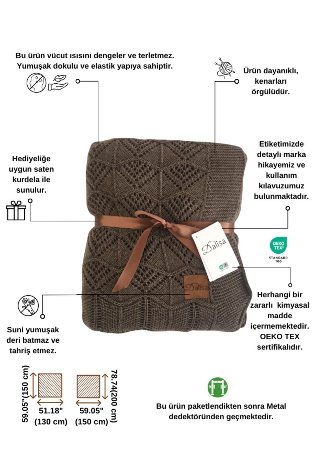 Triko Örgü Tv Battaniyesi, Koltuk Örtüsü & Çocuk Battaniyesi Emily geleneksel el örgülerinin sıcaklığı ve modern tasarımın zarafetini bir araya getirerek evinizi güzelleştiriyor.; Bu ürün, modern ve zarif tasarımıyla dikkat çekerken, 130x150 cm ölçüsü ile farklı kullanım alanlarına uygun olarak tasarlanmıştır.; Ürünümüz, sıcak ve yumuşak bir dokunuş için akrilik iplik kullanılarak üretilmiştir.; Ayrıca nefes alabilir ve hafif bir hacme sahip olmasıyla dikkat çeker, bu da kullanımını daha keyifli hale getirir.; Özel örgü dantel deseni ürünü evinizin dekorasyonunu tamamlayacak bir aksesuar olarak öne çıkarır.; Emily, rahat oturma alanları yaratmak için koltuklarınıza veya kanepelerinize örtü olarak kullanılabilir.; Aynı zamanda çocuğunuzun da mutlu ve güvenli bir şekilde kullanabileceği çok yönlü bir üründür.; Hem fonksiyonel hem de estetik olan bu battaniye, yüksek kaliteli malzemeler kullanılarak üretilmiştir ve uzun ömürlüdür.; Ürünümüz OEKO-TEX STANDARD 100 Sertifikasına sahiptir.; Bu sertifika, ürünlerimizin yüksek kalite ve güvenlik standartlarına uygun olduğunu ve ürünlerimizin çeşitli zararlı maddeler açısından test edildiğini gösterir.; Güvenli ve sağlıklı bir deneyim sunmak bizim önceliğimizdir.; Evteks olarak, sadece kaliteli ürünler sunmakla kalmıyor, aynı zamanda dünya genelinde olumlu bir etki yaratmaya da odaklanıyoruz.; Geri dönüşüm, yeşil enerji kullanımı ve sosyal sorumluluk projeleriyle çevremizi koruyor ve topluma katkı sağlıyoruz.; Ürünlerimiz sadece günlük hayatınızı değil, aynı zamanda dünyamızı daha iyi bir yer haline getirmek için tasarlanıyor.; Hayatınıza güzellik katarken, çevrenizi ve toplumu desteklemek için Evteks'i tercih edin.; Triko Örgü Tv Battaniyesi, Koltuk Örtüsü & Çocuk Battaniyesi Emily ile evinizin konforunu ve zarafetini artırın.; Hemen sipariş verin ve şıklığın keyfini çıkarın! Ürün örgü yapısından dolayı ±5-10 cm değişkenlik gösterebilmektedir.
