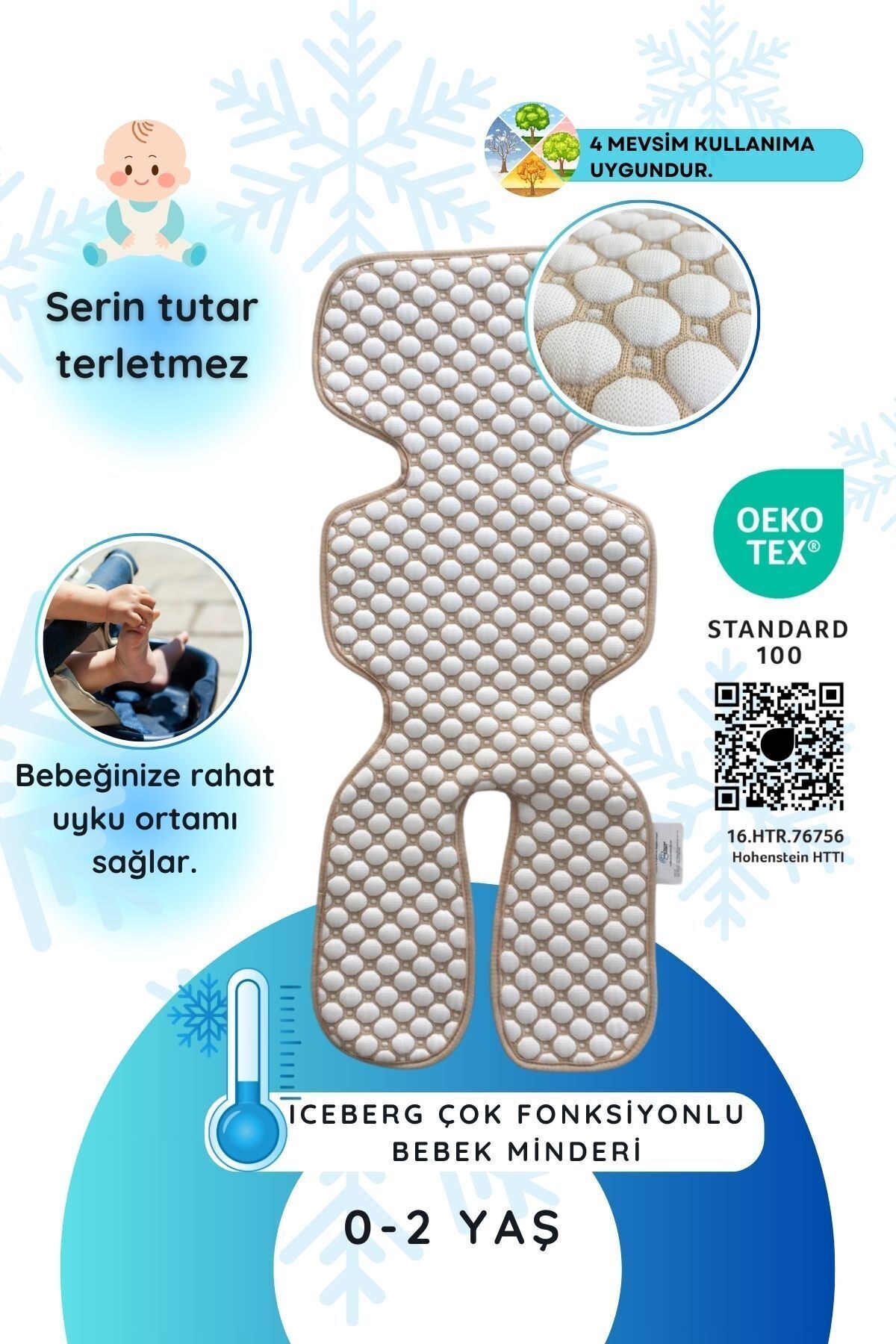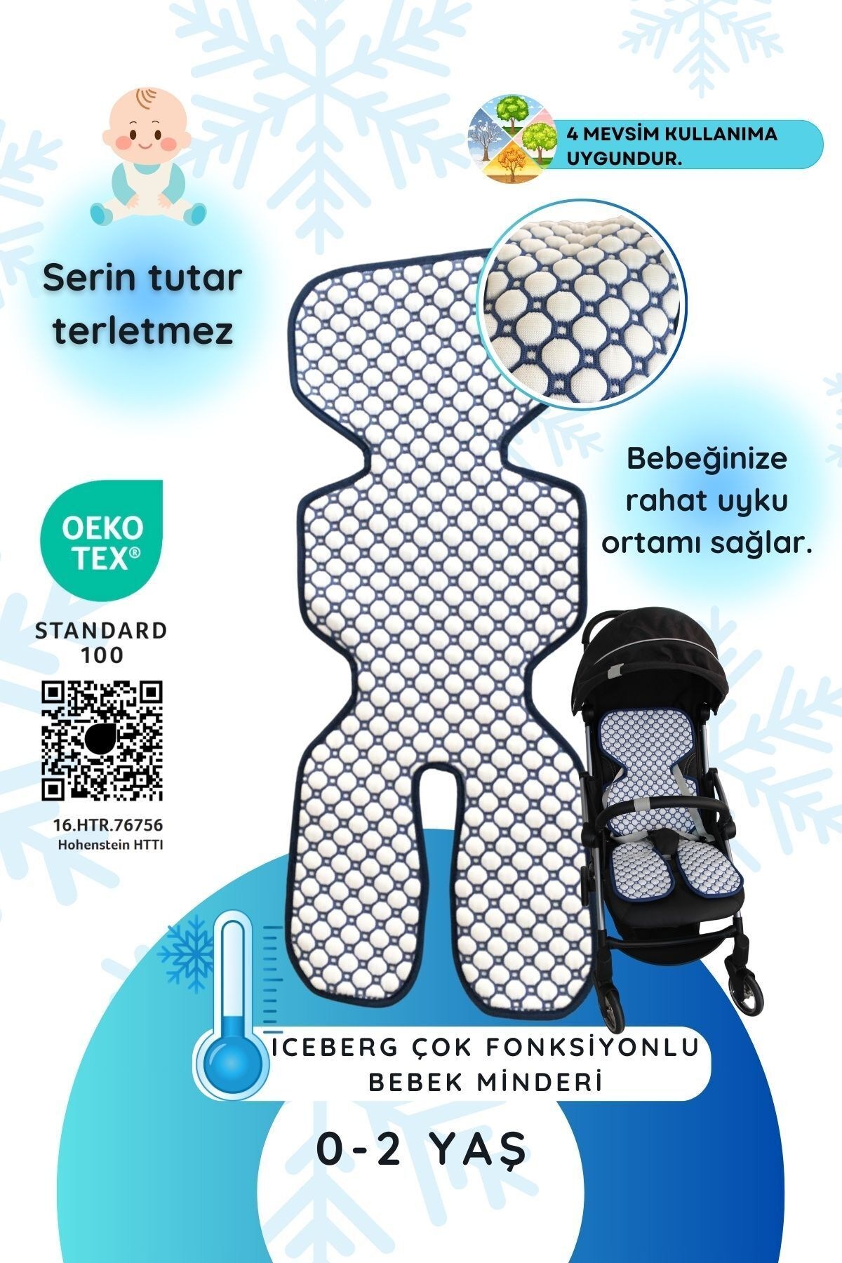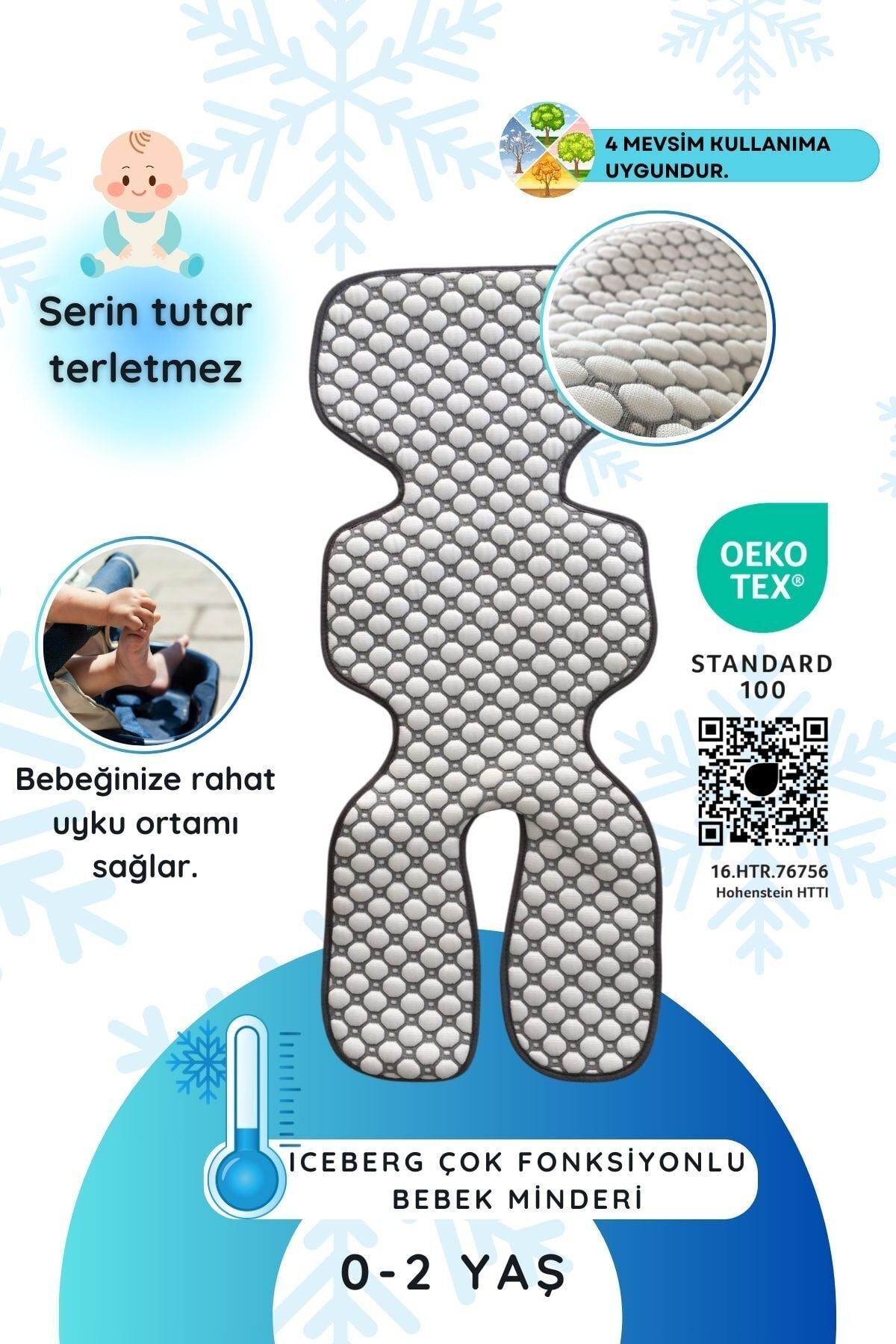 Iceberg Çok Fonksiyonlu, 4D Kumaş Teknolojili Ferahlatıcı Puset Minderi: Hem evde hem de dışarıda bebeğinizin rahatını ve güvenliğini ön planda tutan bu minder, bebek arabaları, mama sandalyeleri ve araba koltukları gibi birden fazla bebek setinde kullanılabilir.; 0-2 yaş arası bebekler ve küçük çocuklar için uygundur ve mükemmel uyum sağlar.; Ürün Özellikleri: 4D Kumaş Teknolojisi: Buzdağının serin ve zarif etkisinden ilham alınarak tasarlanmış Iceberg 4D kumaşı, mükemmel hava sirkülasyonu ve sıcaklık düzenlemesi sağlar.; Bu teknoloji sayesinde bebeğinizin vücudu doğal olarak serin kalır ve kuru, rahat olur.; Terleme Önleyici ve Ferahlatıcı: Yüksek kaliteli kumaş, terlemeyi önler ve sıcak havalarda ferahlatıcı bir konfor sağlar.; Bebeğinizin konforunu artırarak, vücudunun kuru ve rahat kalmasını destekler.; Çok Fonksiyonlu Kullanım: Bu minder, bebek arabaları, mama sandalyeleri ve araba koltukları gibi farklı bebek setlerinde mükemmel uyum sağlar.; Kayış yuvalarına ihtiyaç duymadan kayışların yanlardan ve alttan geçmesine olanak tanır.; Ayrıca, ayrı bacak açıklıkları çocuğunuzun rahat ve güvenli bir şekilde oturmasını sağlar.; Oeko-Tex 100 Sertifikası: En yüksek kalite ve güvenliği garanti eden Oeko-Tex 100 sertifikasına sahiptir.; Bu, bebeğinizin hassas cildine uyumlu ve güvenli bir kullanım sunar.; Metal Dedektöründen Geçirilmiş: Ekstra güvenlik sağlamak amacıyla metal dedektöründen geçirilmiştir.; Metal parça içermez ve bu nedenle bebekler ve çocuklar için güvenli bir kullanım sunar.; Mükemmel Hediye Seçeneği: Özel ve şık bir kutuda sunulan Iceberg Bebek Oto Koltuk Minderi, yeni ebeveynler için mükemmel bir hediye seçeneğidir.; Hem fonksiyonel hem de estetik bir hediye arayanlar için ideal bir tercih sunar.; Kolay Temizlik: Minder, uzun ömürlü kullanım ve kolay temizlik sağlar.; Bakım ve temizlik işlemleri zahmetsiz bir şekilde yapılabilir.; Bebeğinizin Konforu İçin En İyi Seçim: Iceberg 4D Kumaş Teknolojili Puset Minderi ile bebeğinizin hem evde hem de dışarıda mükemmel konforunu ve güvenliğini artırarak uyku ve oturum deneyimini mükemmel hale getirin!