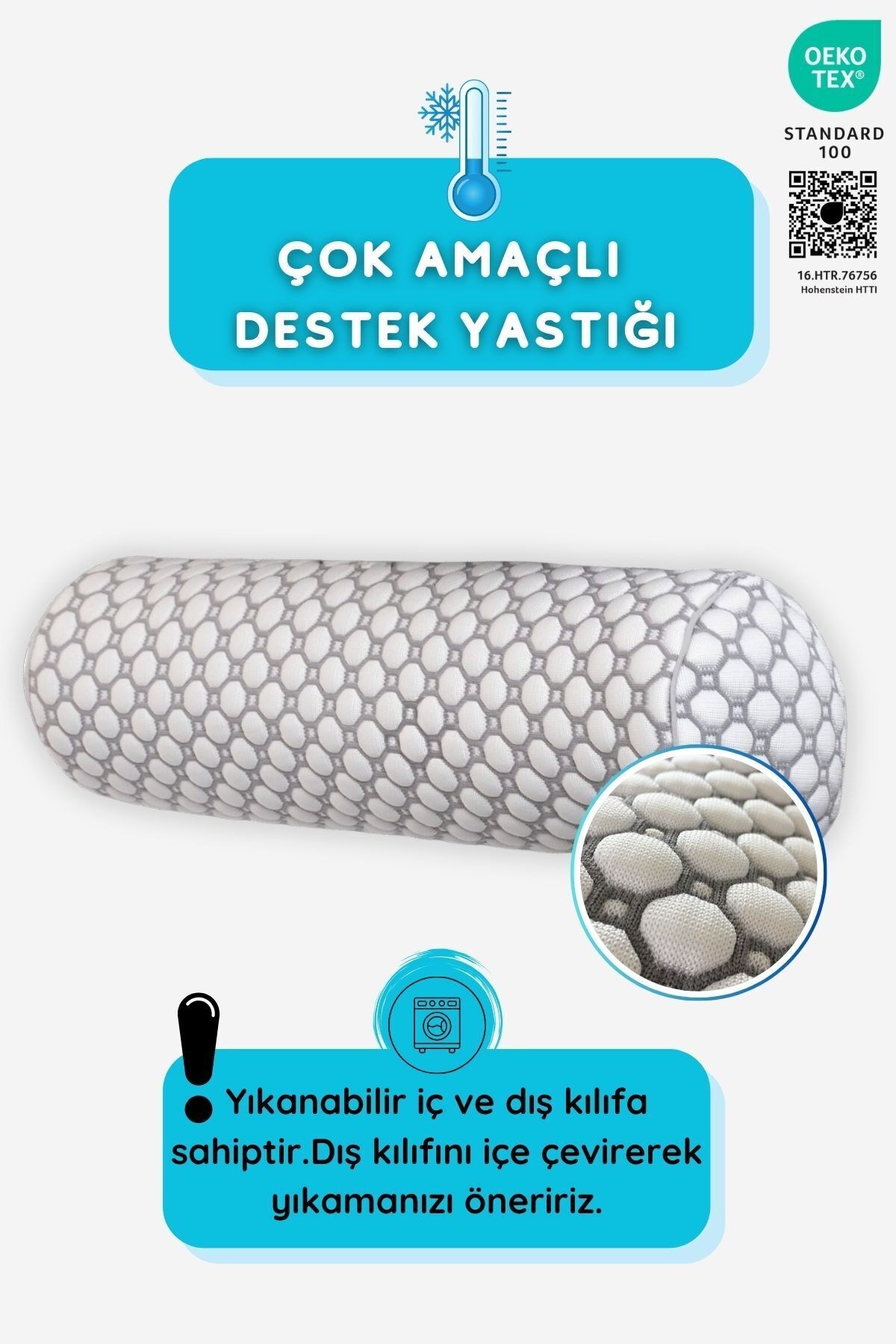 Dalisa Iceberg Silindir Yastık ile uyku konforunda yeni bir boyut keşfedin! Silindir boyun şekli, hem estetik hem de fonksiyonel bir destek sunar.; Oeko-Tex 100 Sertifikası, bu yastığın yüksek kalite ve güvenliğini garanti eder.; Yenilikçi 3D örgü yapısı, ferahlatıcı bir uyku için özel olarak tasarlanmış olup, aşırı ısınma sorununu ortadan kaldırır ve konforlu bir uyku deneyimi sağlar.; Öne Çıkan Özellikler: Hipoalerjenik ve Oeko-Tex Sertifikalı: Yastık, hassas ciltler ve alerjisi olan bireyler için idealdir.; Zararlı kimyasallardan tamamen arındırılmıştır ve Oeko-Tex 100 Sertifikası ile güvenliği ve kalitesi onaylanmıştır.; ; Terleme Önleyici ve Ferahlatıcı: Yüksek teknolojili 3D örgü yapısı, hava dolaşımını artırır ve terlemeyi önler.; Nefes alabilir yapısı sayesinde ferahlatıcı bir uyku deneyimi sağlar.; ; Kolay Temizlik ve Bakım: Yastık, 30°C’de yıkanabilir.; Hassas yıkama önerilir.; Kırışmaz yapısı ve şeklini koruma özelliği ile bakım işlemleri son derece basittir.; ; Şık ve Fonksiyonel: Yastığın pürüzsüz, yumuşak dokusu, ciltte rahat bir his sağlar.; Çeşitli desenlerde sunulan bu yastık, hem baş hem de boyun desteklemek için kullanılabilir ve her yatak takımına şıklık katar.; ; Metal Dedektöründen Geçirilmiş: Metal parça içermez ve metal dedektöründen geçirilmiş olarak güvenli bir kullanım sunar.; Bu, ürünün bebekler ve çocuklar için uygun olduğunu garanti eder.; ; Dalisa Iceberg Silindir Yastık ile yüksek kaliteli malzeme ve ileri teknolojiyi bir araya getirin.; Her gece ferahlatıcı ve konforlu bir uyku deneyimi yaşayın ve yeni güne tazelenmiş ve hazır bir şekilde başlayın!
