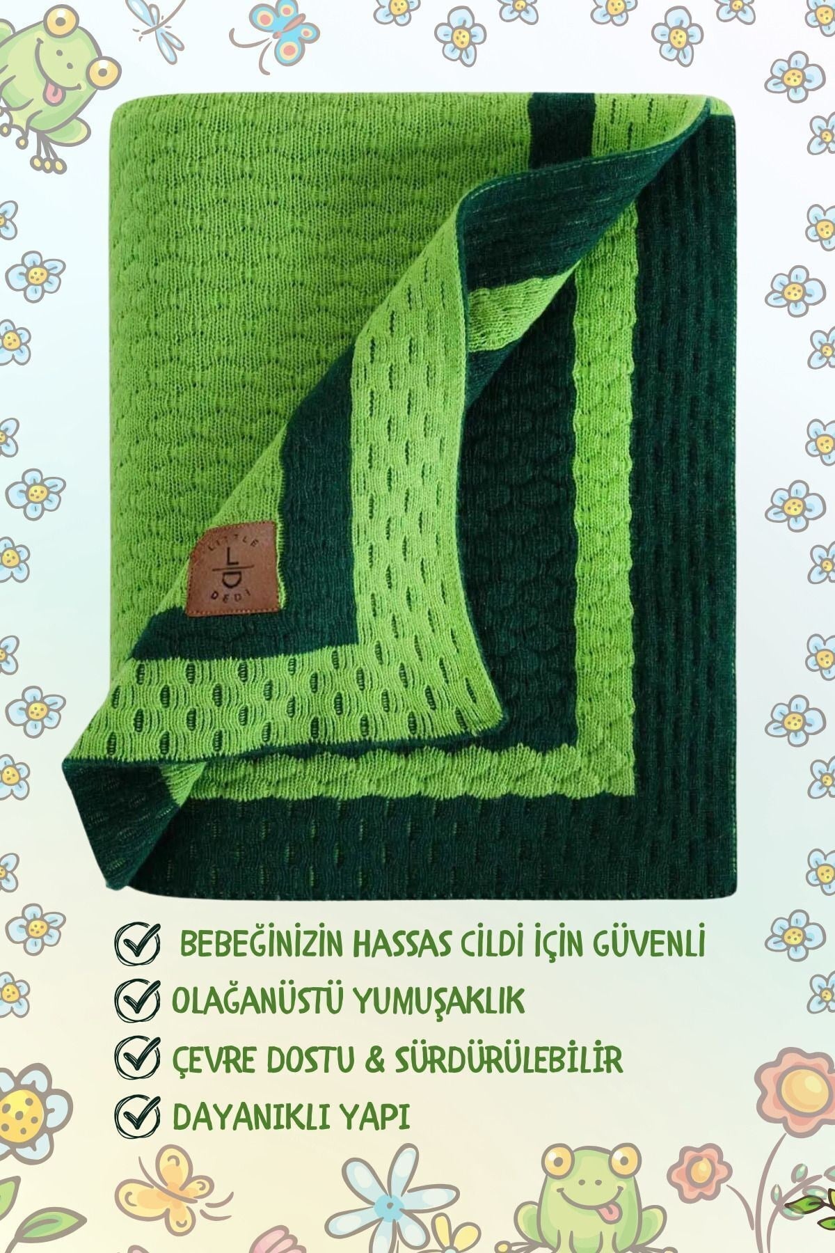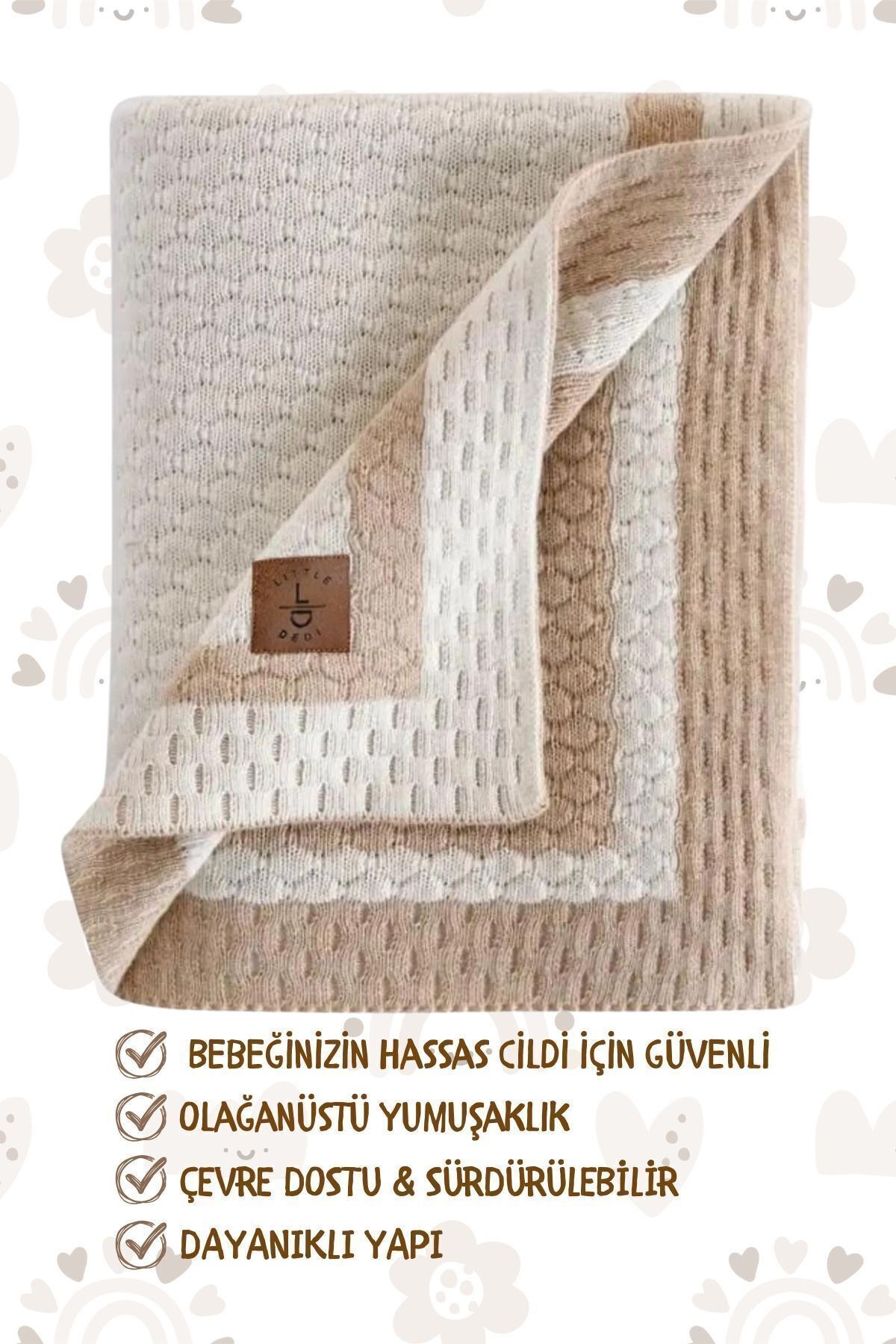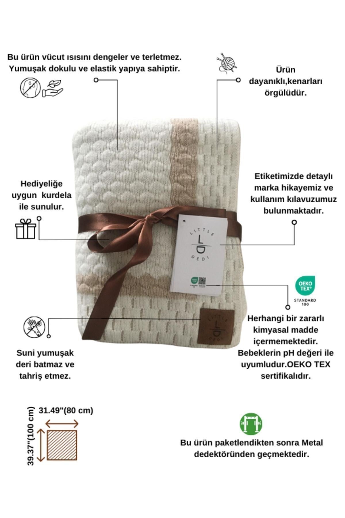 Triko Örgü Bebek ve Çocuk Battaniyesi Shell, hem bebekler hem de çocuklar için konfor ve zarafeti bir araya getiren özel bir üründür.; Doğal hammaddelerden elde edilmiş malzemelerle üretilen bu battaniye, hassas ciltler için nazik bir dokunuş sağlar.; Çift taraflı kullanım özelliği ve çeşitli renk seçenekleriyle, odanıza renk ve canlılık katar.; Ürün Özellikleri: Çift Taraflı Kullanım: İki farklı renk seçeneği sunar, böylece ihtiyacınıza göre battaniyenizi değiştirebilir ve odanızı çeşitlendirebilirsiniz.; ; Hafif ve Yumuşak: Yumuşacık dokusu, hem bebekler hem de çocuklar için rahat bir uyku ve konfor sağlar.; Pratik boyutlarıyla günlük kullanım için ideal bir seçenektir.; ; İdeal Boyut: 80x100 cm ölçüsü, hem bebekler hem de çocuklar için mükemmel bir boyut sunar ve hem evde hem de seyahatte kullanım için uygundur.; ; Kolay Bakım: Makinede 30°C'de yıkanabilir, bu sayede kolayca temizlenir ve kullanım kolaylığı sağlar.; ; Güvenli ve Sağlıklı: Ürünümüz OEKO-TEX STANDARD 100 Sertifikasına sahiptir.; Bu sertifika, yüksek kalite ve güvenlik standartlarına uygun olduğunu ve ürünlerimizin çeşitli zararlı maddeler açısından test edildiğini gösterir.; ; Metal Dedektöründen Geçirilmiş: Ürün, herhangi bir metal parçası içermediğini garanti etmek amacıyla metal dedektöründen geçirilmiştir, bu da güvenli ve sorunsuz bir kullanım sağlar.; ; Sürdürülebilirlik ve Sosyal Sorumluluk: Evteks olarak, geri dönüşüm, yeşil enerji kullanımı ve sosyal sorumluluk projeleriyle çevreyi koruyarak topluma katkıda bulunuyoruz.; Ürünlerimiz çevreye duyarlı malzemelerle üretilmiş olup, dünyayı daha iyi bir yer yapma hedefimiz doğrultusunda tasarlanmıştır.; Not: Ürün örgü yapısından dolayı ±5-10 cm ölçü değişkenliği gösterebilir.; Eğer siz de bebeğinizin ve çocuğunuzun konforunu ve odasının şıklığını ön planda tutuyorsanız, hemen Shell Triko Örgü Bebek ve Çocuk Battaniyesi’ni keşfedin ve onların rahatını artırın!